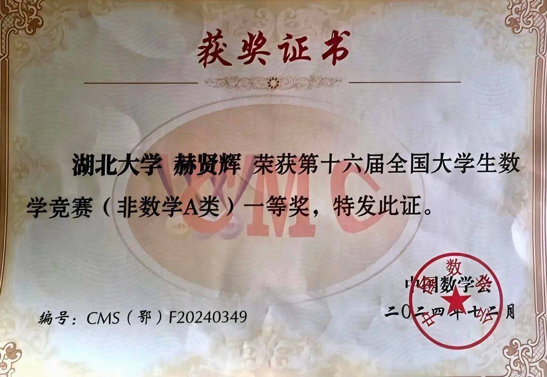 不懈的努力,终有回报。大学期间,赫贤辉的专业成绩始终稳居专业第二,多门课程成绩超过90分,连续两年获得国家励志奖学金。而在众多学科中,数学成为了他的“执拗”与“救赎”。